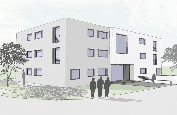 In Zentrum eines Wohngebietes in unmittelbarer Nähe zu einem öffentlichen Grünzug wird in Kürze ein neues Wohngebäude entstehen.