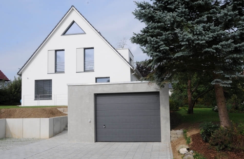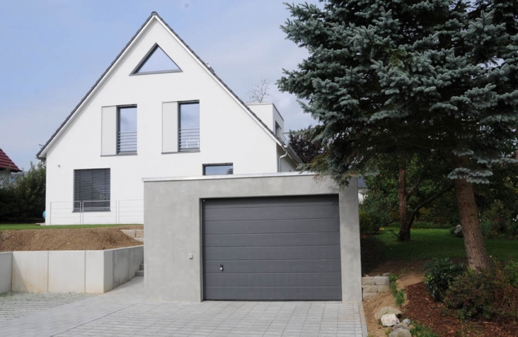 Der Neubau einer Sichtbetongarage rundet das ganzheitliche Erscheinungsbild ab.