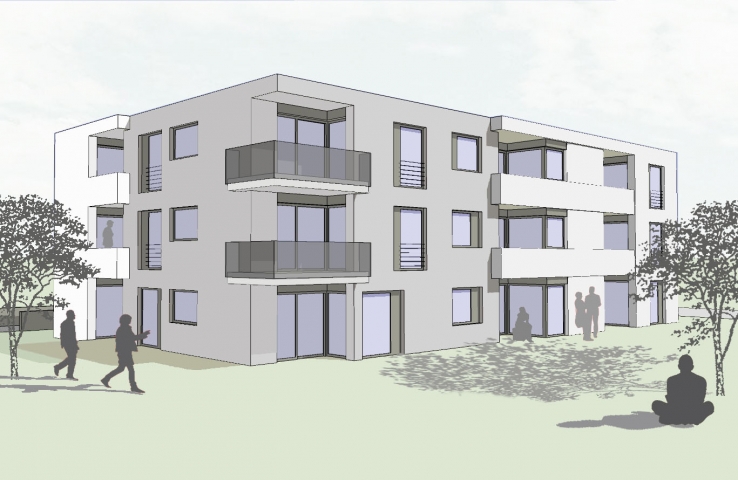 In Zentrum eines Wohngebietes in unmittelbarer Nähe zu einem öffentlichen Grünzug wird in Kürze ein neues Wohngebäude entstehen.